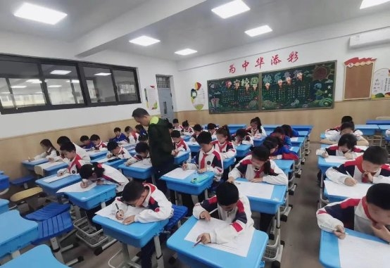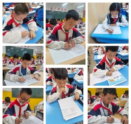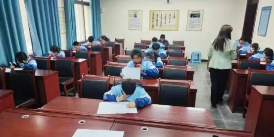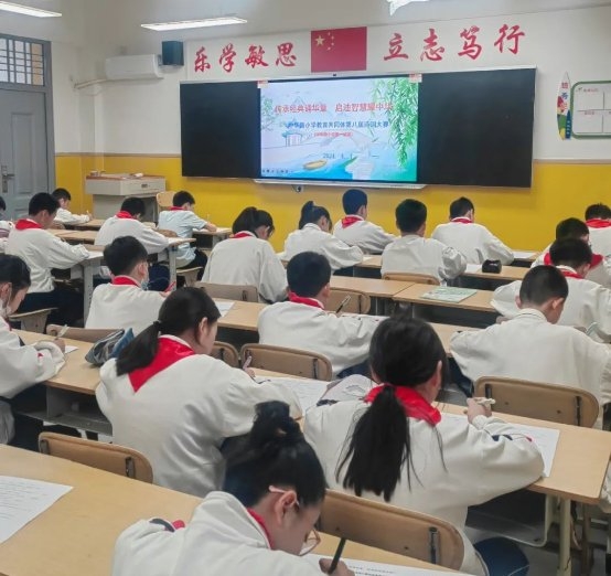 三至六年级各班经过班级初赛,推选出班级优胜者参加校级比赛。瞧,孩子们一张张稚嫩的脸庞上写满了严肃与认真,笔尖在纸上飞舞,伴随着轻微的沙沙声,一道道诗词题目迎刃而解……