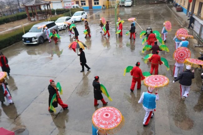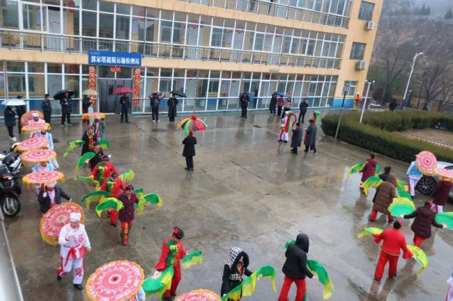 活动现场,喧天的锣鼓率先打破了春日的宁静,瞬间点燃了全场的喜悦氛围。张家湾村秧歌队的队员们身着红绸彩装,手持彩扇、手绢,踩着明快的鼓点翩跹起舞。她们步伐轻盈灵动,笑容灿烂真挚,彩扇翻飞间如红霞漫卷,手绢挥舞时似彩蝶蹁跹,将传统秧歌的喜庆韵味与乡村的蓬勃活力展现得淋漓尽致。每一个转身、每一次跳跃,都饱含着乡亲们对超限站工作人员的美好期许。