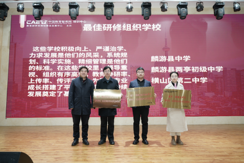 现场,还进行了学期研修总结表彰和交流分享。表彰了最佳研修组织学校3个,“最佳学科研修团队”5个,“最佳学科组合”12个,“惟实躬行校长”7名,“悉心度人一线名师”和“示范践行主备教师”分别16名,“勤勉笃学主研教师”36名。