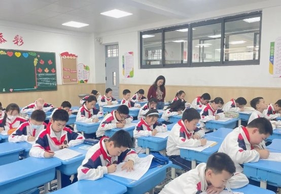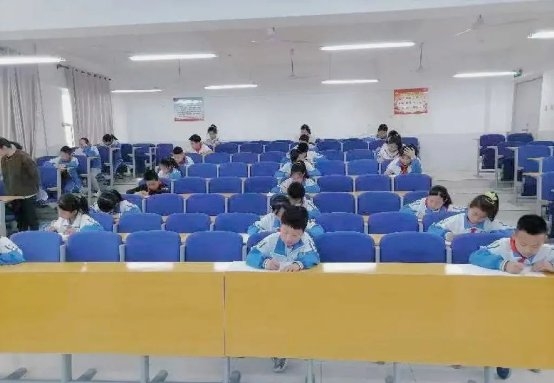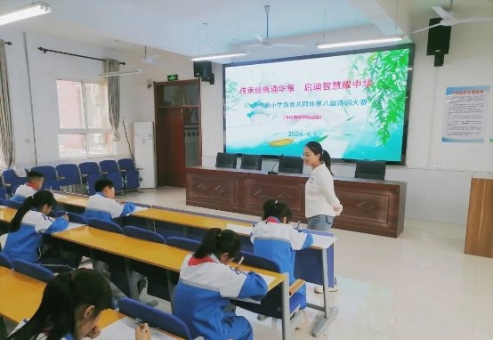 三至六年级各班经过班级初赛,推选出班级优胜者参加校级比赛。瞧,孩子们一张张稚嫩的脸庞上写满了严肃与认真,笔尖在纸上飞舞,伴随着轻微的沙沙声,一道道诗词题目迎刃而解……