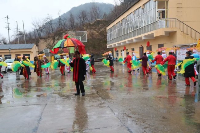 活动现场,喧天的锣鼓率先打破了春日的宁静,瞬间点燃了全场的喜悦氛围。张家湾村秧歌队的队员们身着红绸彩装,手持彩扇、手绢,踩着明快的鼓点翩跹起舞。她们步伐轻盈灵动,笑容灿烂真挚,彩扇翻飞间如红霞漫卷,手绢挥舞时似彩蝶蹁跹,将传统秧歌的喜庆韵味与乡村的蓬勃活力展现得淋漓尽致。每一个转身、每一次跳跃,都饱含着乡亲们对超限站工作人员的美好期许。