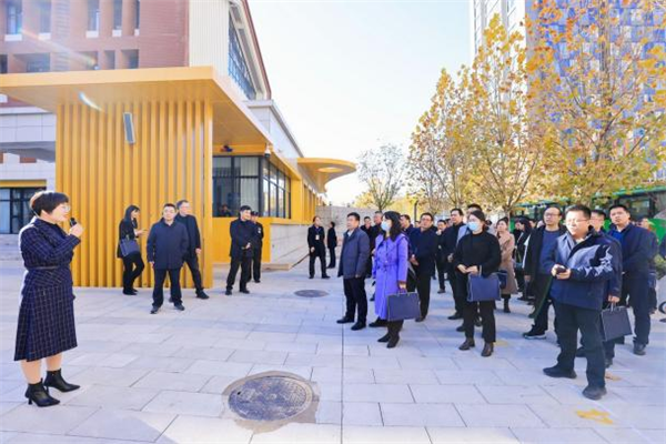 在学校前广场,灞桥区政府教育总督学张颖简要介绍了近年来灞桥教育发展情况,纺织城小学教育集团总校长唐晓芳介绍了学校基本情况。